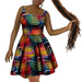 This African-style dress features a vibrant Dashiki-inspired print crafted with precision and care. The flowing design and structured fit accentuate your figure while ensuring maximum comfort. The short or three-quarter sleeves and modest neckline offer a refined look suitable for both casual and formal events. Its flared hemline adds a touch of elegance and freedom, allowing the fabric to move beautifully as you walk.