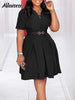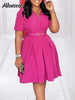 A matching waist belt cinches the midsection beautifully, creating a defined and feminine shape that complements both curvy and petite frames. The mid-length hemline enhances versatility—modest enough for workplace attire, yet stylish enough for evening dinners, social events, or African-inspired gatherings.